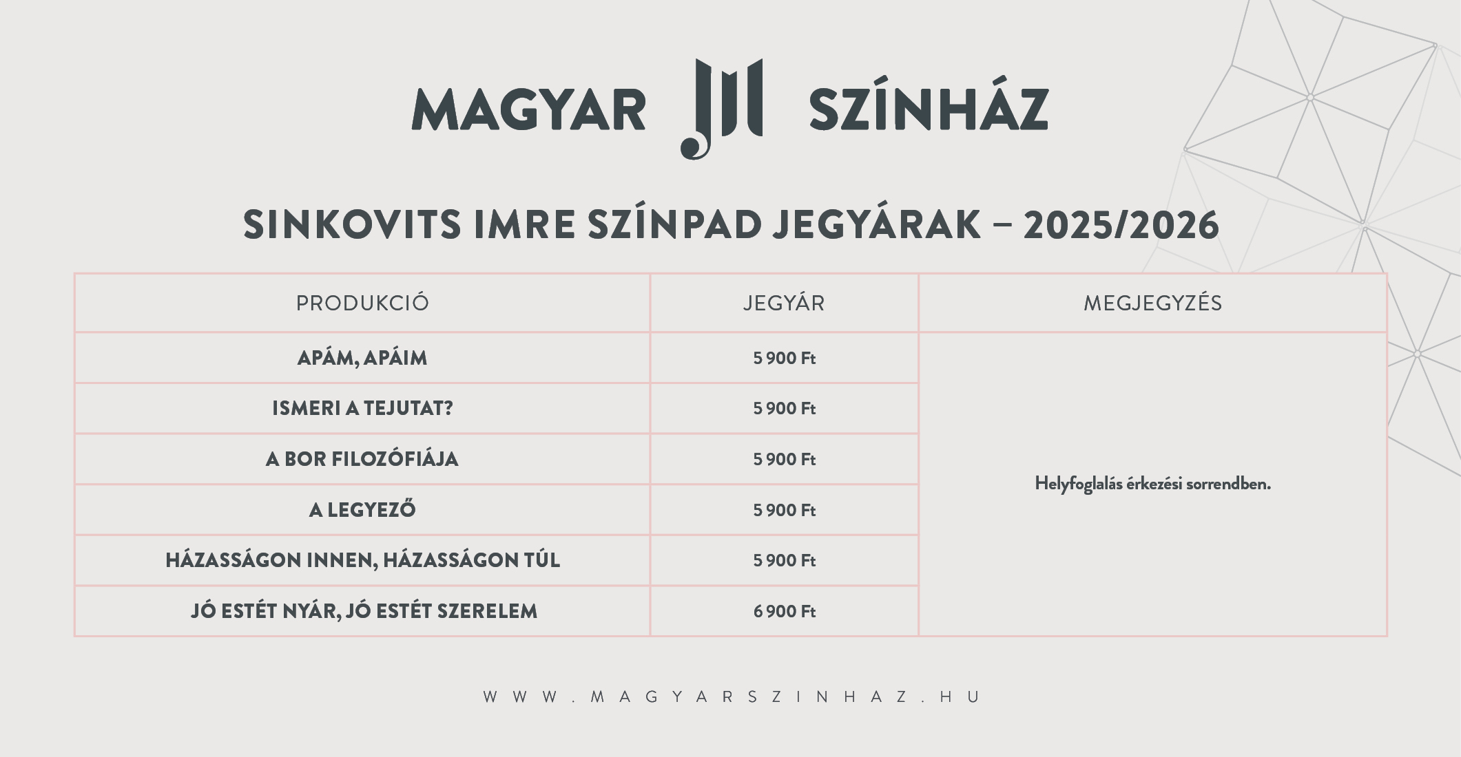 - Jegyet csak elmaradt előadás esetén cserélünk, vagy váltunk vissza!